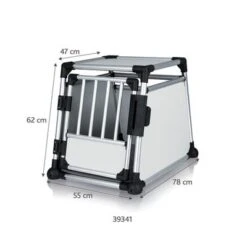 This aluminium transport crate by Trixie is a safe solution for travelling by car with your dog. The front and back sides are slanted which means that the crate fits easily into the car boot. The crate is constructed to be stable yet light (23kg) as it is made from aluminium.
