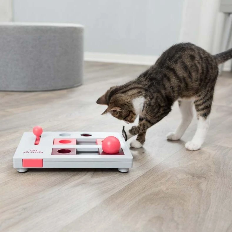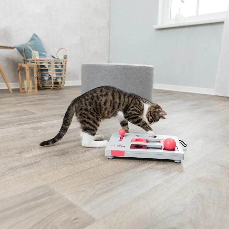 Many cats do not only want physical activity, they need mental challenges as well. Our Cat Activity Strategy Games are excellent for this. With these cat toys, the cat is challenged to work for her treat and solve small tasks in order to get the snacks with the help of paw or mouth. This trains the cat’s dexterity.
