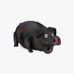 - Trixie latex Pig comes with a squeaker that squeaks when chomped on.