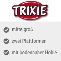On two different levels, your velvet paw can snooze comfortably and enjoyably with a safe feeling and the best view. If she wants a little more privacy, the floor-level cave with plush cover invites her to hide & snuggle. The Trixie Badalona cat tree is comparatively space-saving and therefore also well suited for niches or smaller rooms. With its simple shape and monochrome design in natural cream, the scratching furniture cleverly keeps a low profile and therefore fits into many interiors.