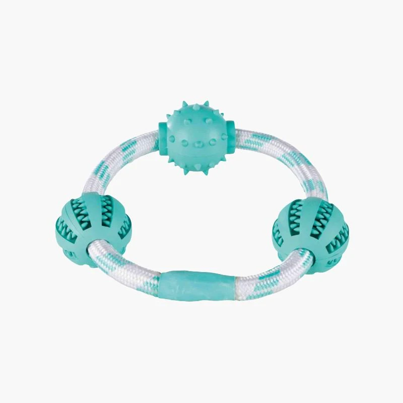 Curbing your dog urge to chew on things, while keeping up their oral hygiene. The Dental Fun Ring massages the gums and its mint flavour makes everything taste and smells great!