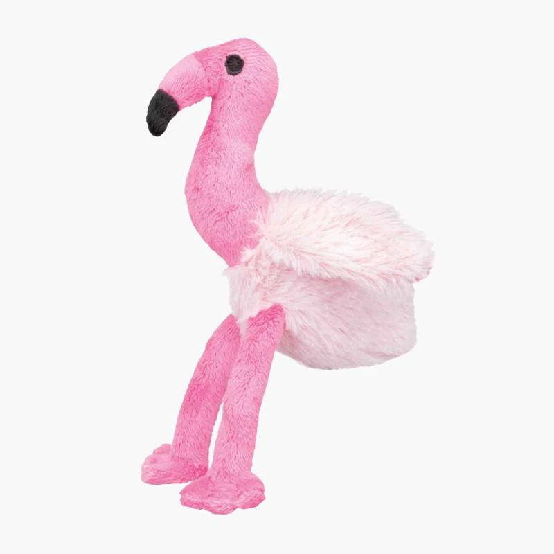 Fluffy plush flamingo toy to accompany your dog for a cuddly night of sleep or a fun game of tug-of-war.