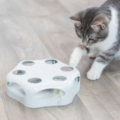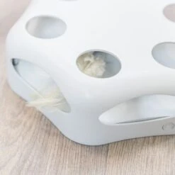 The Trixie Turning Feather Cat Toy will keep your cat entertained for hours, thanks to the unpredictability of the toy’s movements. The round and oval shaped treats can also be filled with treats to keep your cat interested for longer and encourage prolonged play. The anti-slip feet ensure that the toy will be stable and secure even on smooth floors. This cleverly designed battery-operated toy brings joy and activity to your cat’s daily routine.