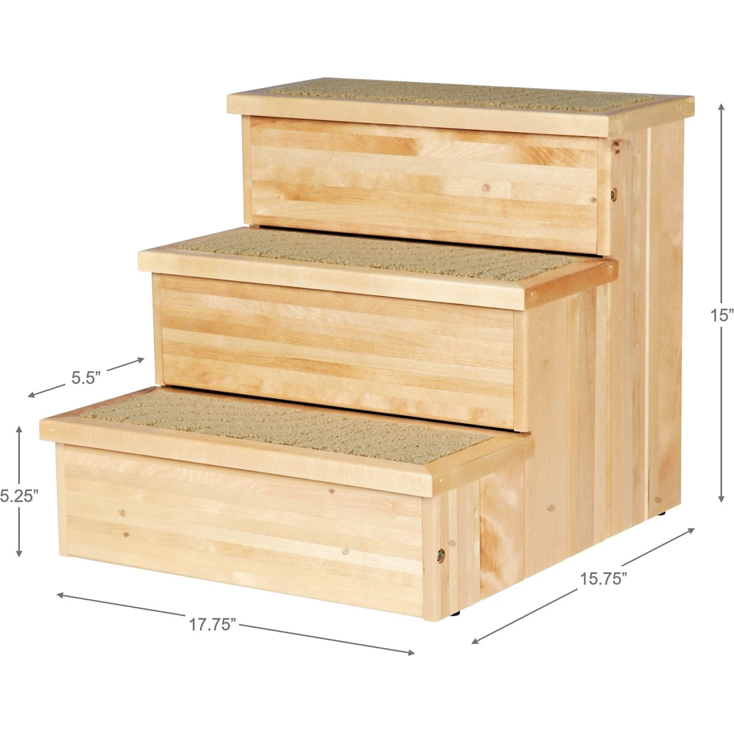 - Made from a beautiful birch wood with a clear varnish finish and carpet-lined stairs for safety.